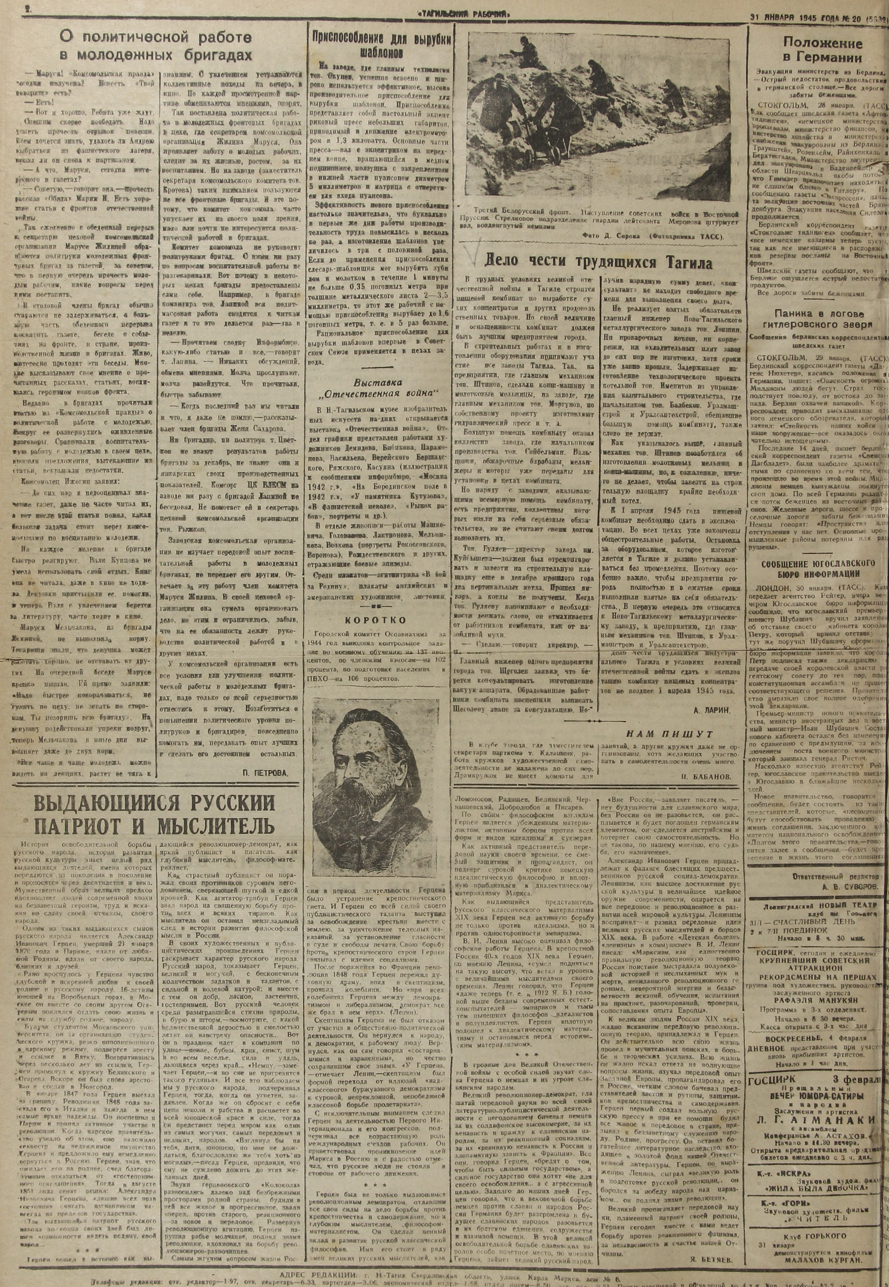 Дело чести трудящихся индустриального Тагила в условиях великой отечественной войны сдать в эксплоатацию комбинат пищевых концентратов не позднее 1 апреля 1945 года.