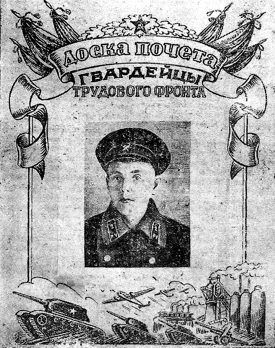 Николай Ехлаков, ученик ремесленного училища № 2, член ВЛКСМ, систематически выполняет норму на 200-250 процентов.