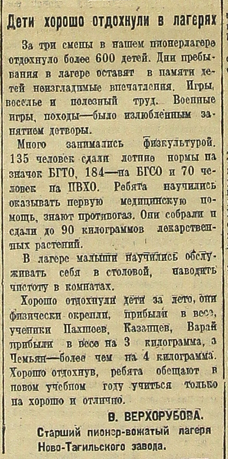 Старший пионер-вожатый лагеря Ново-Тагильского завода.