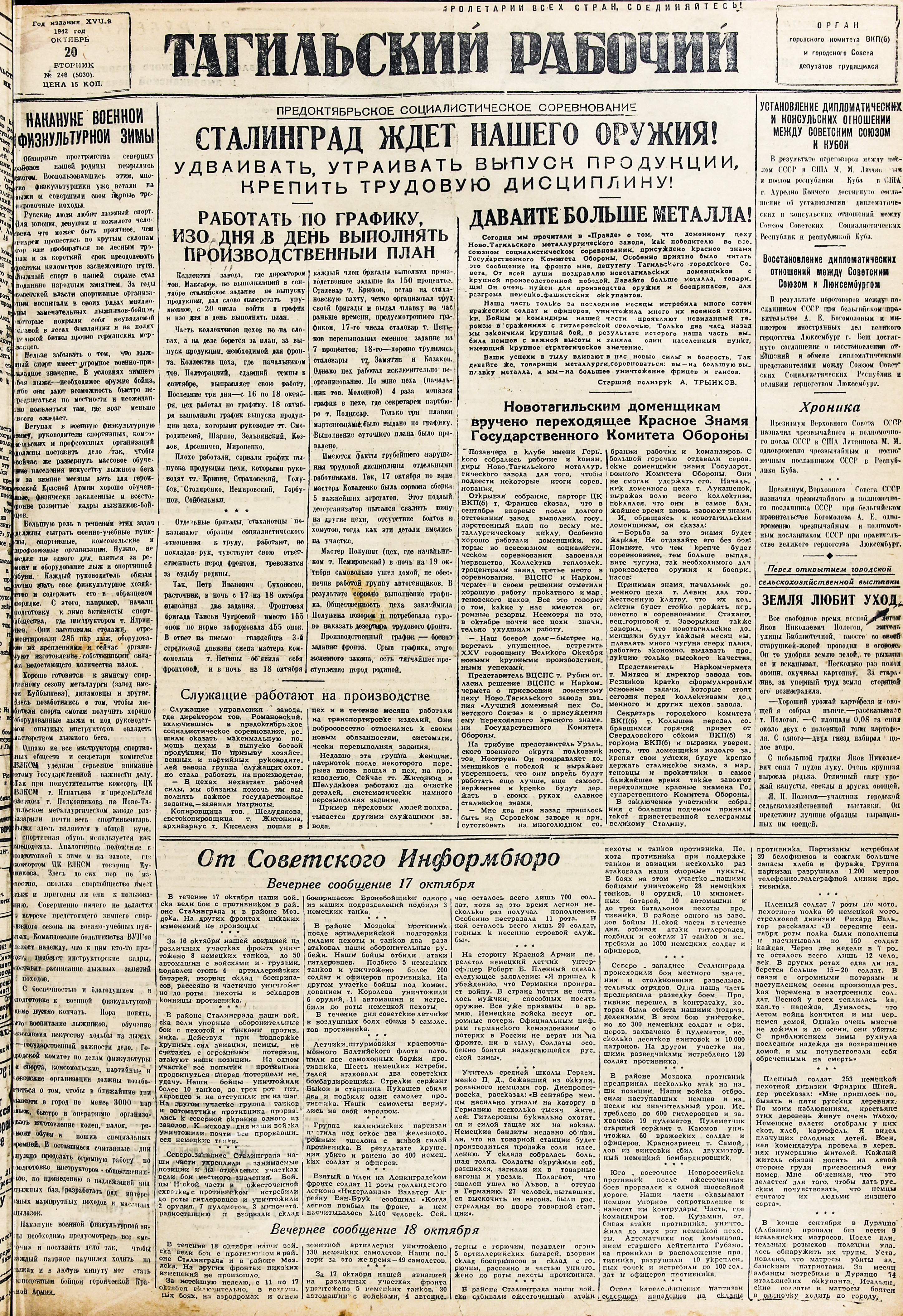 Тагильский рабочий - это городская общественно-политическая газета основанная в мае 1906 года.