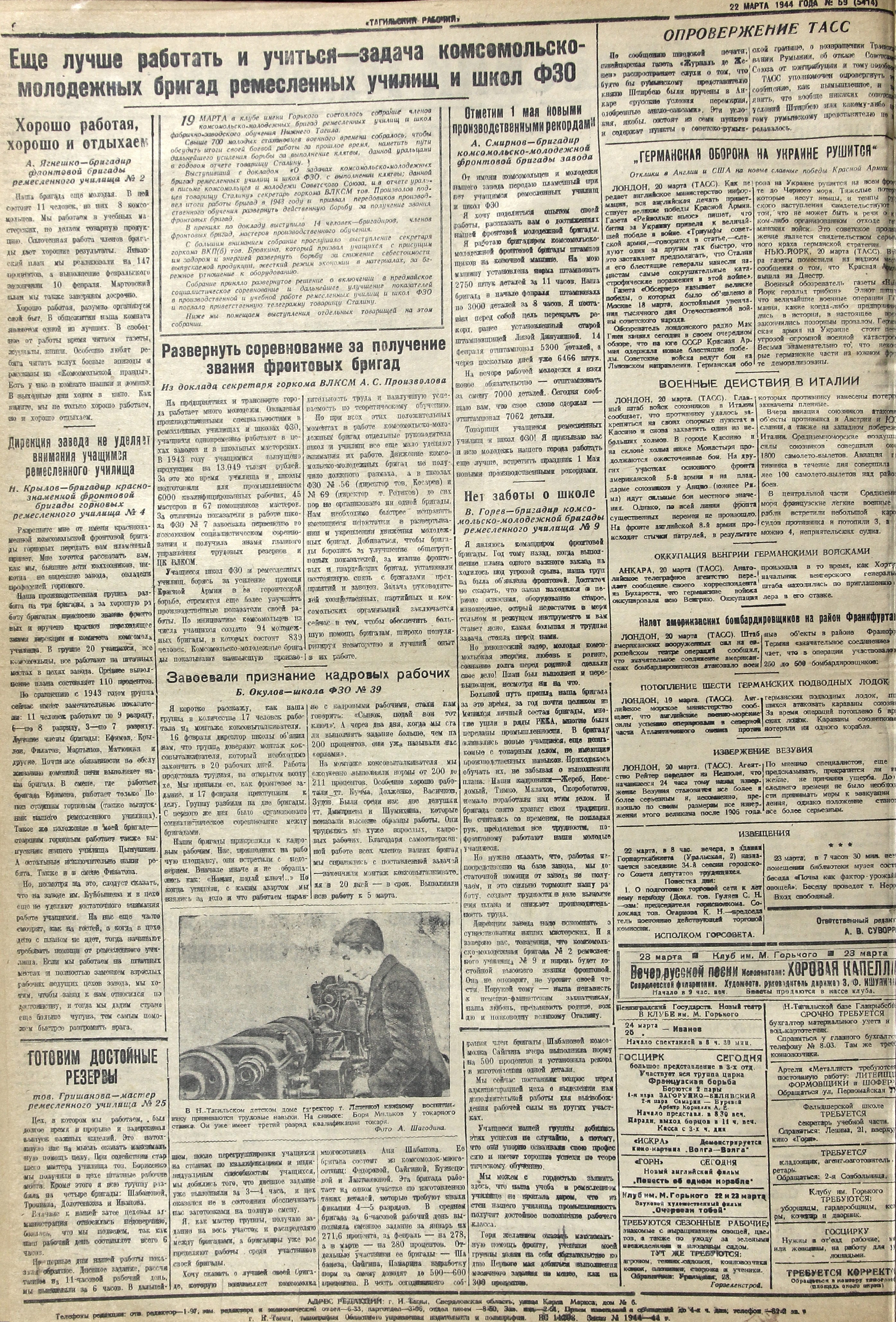 Тагильский рабочий - это городская общественно-политическая газета основанная в мае 1906 года.